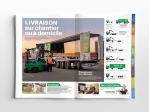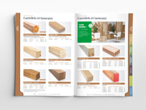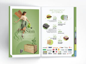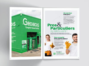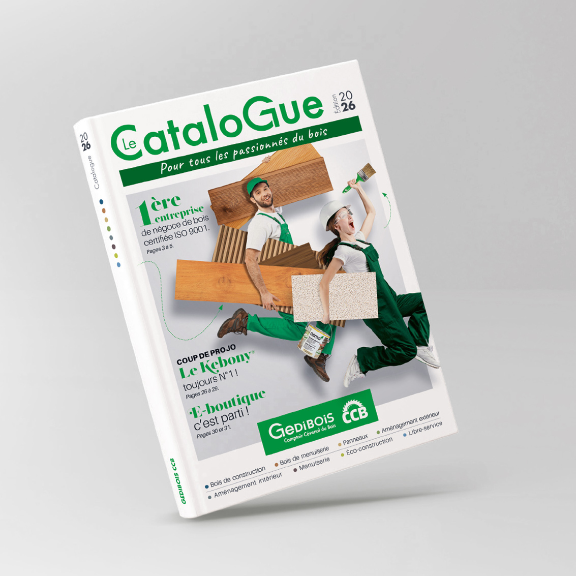 Nous accompagnons l'entreprise Gedibois CCB spécialiste du négoce bois et dérivés depuis 2019 dans la réalisation de son catalogue annuel. Ce catalogue de 312 pages destiné à la fois à ses clients pros et particuliers présente en huit chapitres un large choix des produits proposés par l'enseigne.