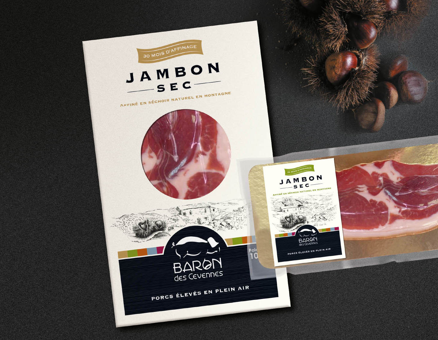 Né d'éleveurs passionnés accompagnés de chefs étoilés du Gard et d'acteurs locaux, la marque Baron des Cévennes propose des produits issus d'élevages de porcs de haute qualité, en circuit court dans le respect de l'animal et de son environnement.